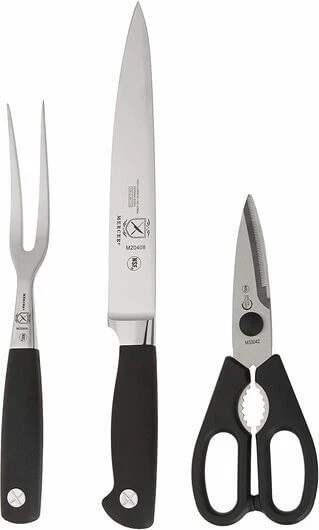 Kitted together with a Carving Knife, Carving Fork and Poultry Shears, this Mercer carving set is ideal for those big juicy Christmas turkeys, golden brown roast chickens and pork roastÂ