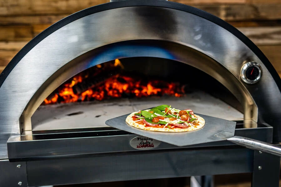 Master your pizza oven skills with the Flaming Coals Aluminum Pizza Peel and Oven Brush Combo. Use the Oven Brush to clean your oven, with it’s strong steel bristles as well as move your logs around during a cook with the steel covered brush head with scraper. The Aluminum Pizza Peel is perfect for putting in and taking out those delicious homemade pizzas without burning yourself.