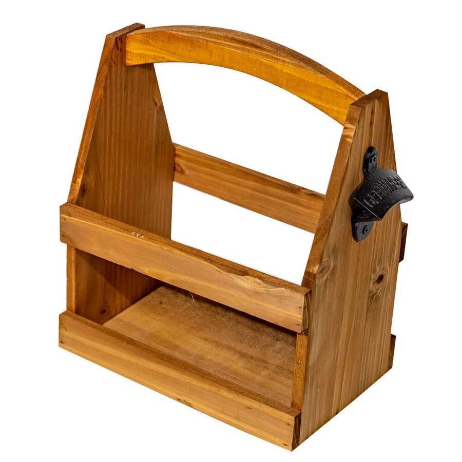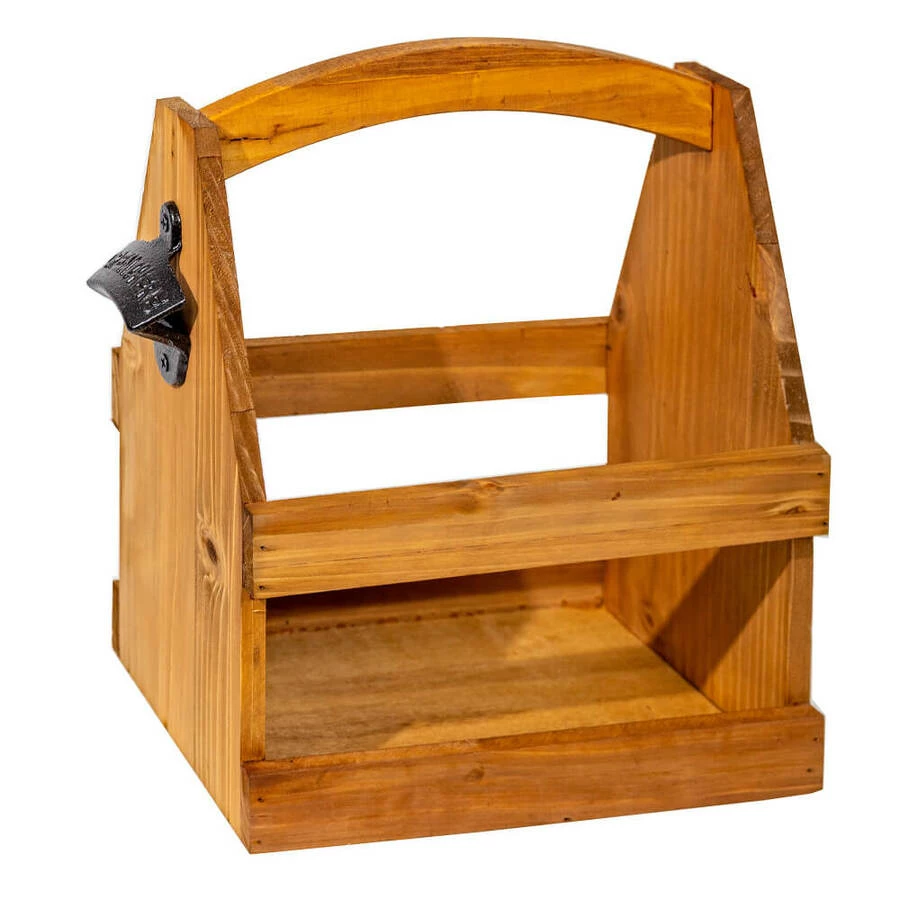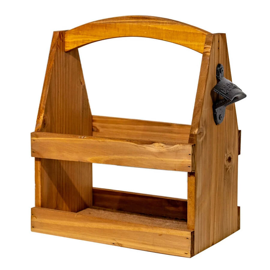 Wooden Beer Caddy with Bottle Opener – 6 pack