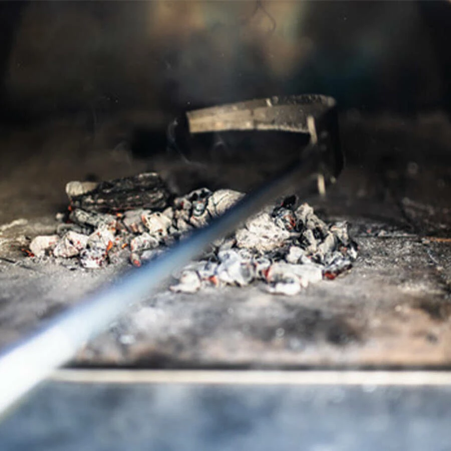 To easily remove or rearrange the coal and ashes from your wood-fired pizza oven you need a rake. Flaming Coals Charcoal|Wood Rake for Pizza Ovens and Fireplaces will assist you in removing the ashes from your pizza oven or fireplace and disposing of them properly using a shovel. Its curved shape also makes it a useful oven accessory that allows you to quickly move charcoal and continue the cooking. With this elongated handle, it is very effective in reaching the back edges of the oven, otherwise difficult to reach, to clean out the ashes.