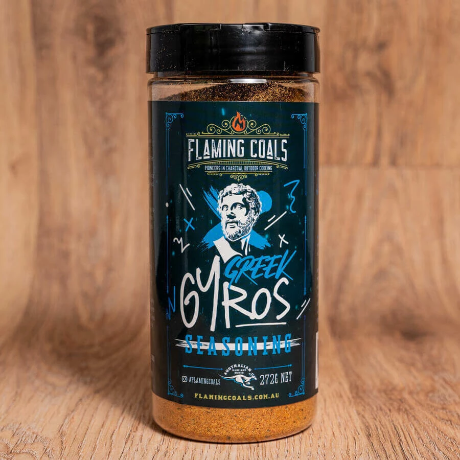 Introducing the Flaming Coals Greek Gyros Pack. This combo includes a Stainless Steel Gyros Carving Shovel for precise slicing and Greek Gyros Spit Roaster Seasoning for authentic Mediterranean flavours. Elevate your home-cooked gyros today!