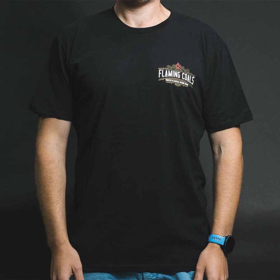 Flaming Coals T-Shirt- Lamb. Dad jokes go hand in hand with barbecuing so what better t-shirt to wear around the BBQ than one that combines the 2! Look and cook like a BBQ pro wearing the Flaming Coals Lamb-inspired tee. What’s a lamb’s favourite meal? BAAARbeque!