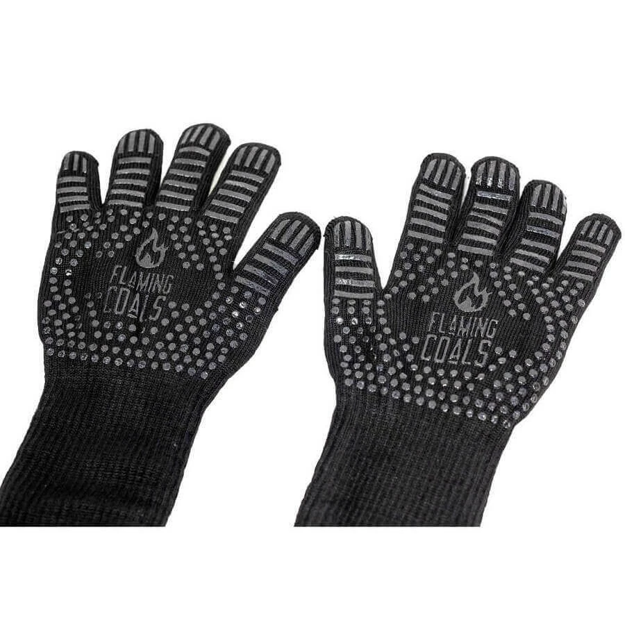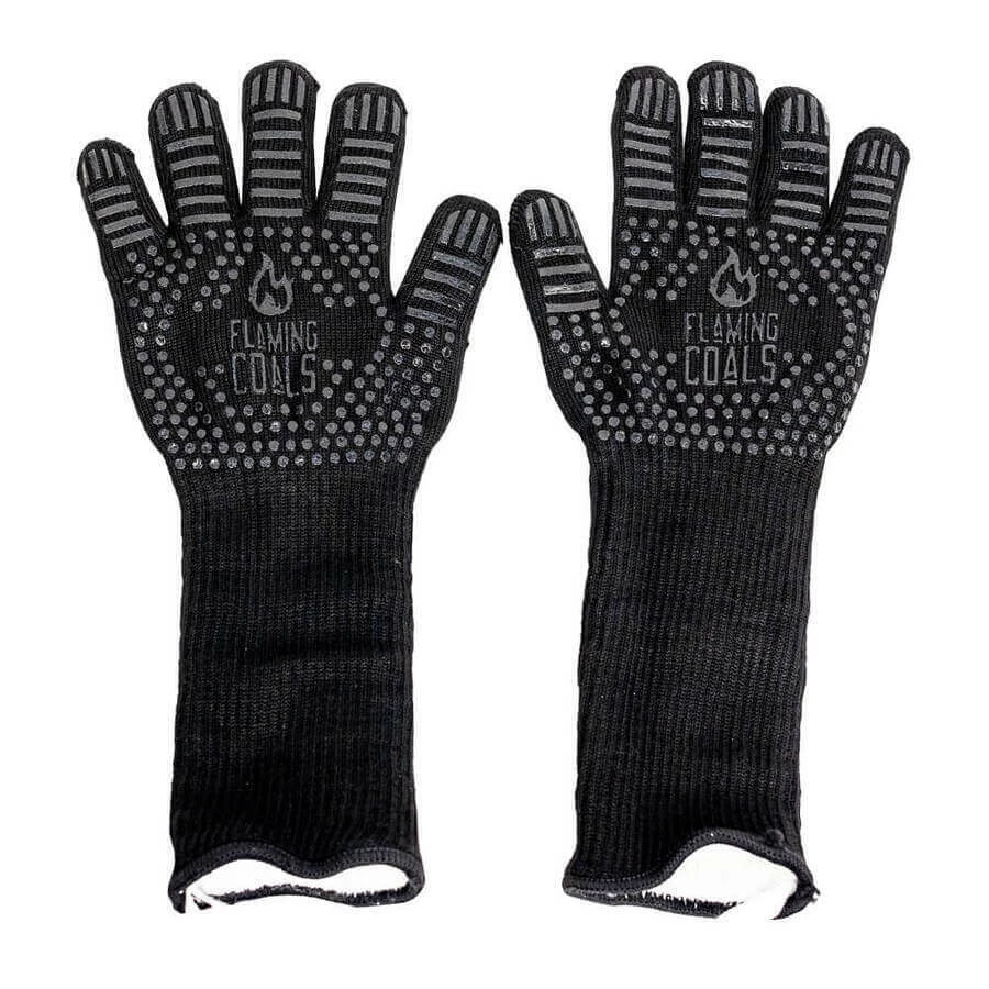 Standard length gloves that just cover up to your wrist are great for lifting smoker lids or moving a hot grill, however, if you are lighting a chimney starter full of hot charcoal then you need a little more protection than just your hands. The radiant heat from hot coals pouring out of the chimney starter will burn your forearms. This is also the same when you are arranging hot coals in your pit. Flaming coals realised that this was an issue with using shorter heatproof gloves and developed the Heat Resistant Gloves | Long Sleeve BBQ Gloves. These gloves are 35cm long so they cover the entire length of your forearm and can handle heat up to 500°c