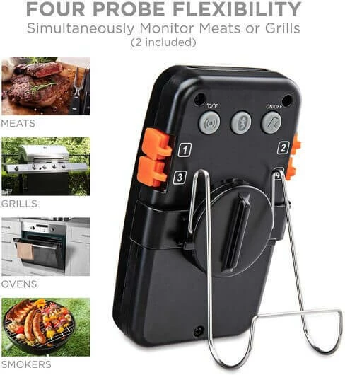 - The product includes 2 x 36” (91.44 cm) long universal waterproof probes with probe wire rated for 572°F/300°C so you can monitor at the same time two cuts of meat, two surface grill temperatures, or one of each. The device features inputs for up to 4 probes so you can purchase separately 2 additional probes