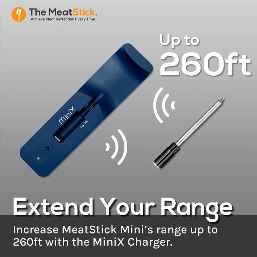 The Meatstick MiniX Set Range 260ft is a cooking tool for the home cook. It’ll help you prepare the juiciest steak, chicken, fish, turkey, and any other meat you can think of with its 5.5 mm thickness and 9.5 cm length. You can keep an eye on your meat from a distance of up to 260 feet with the X charger.