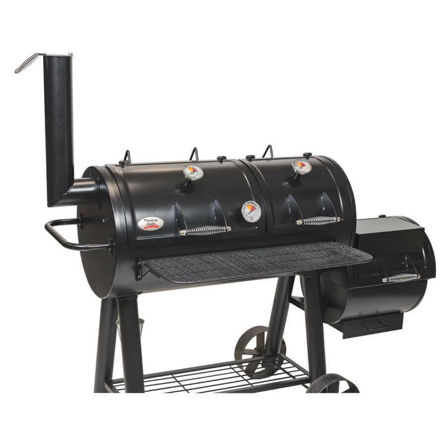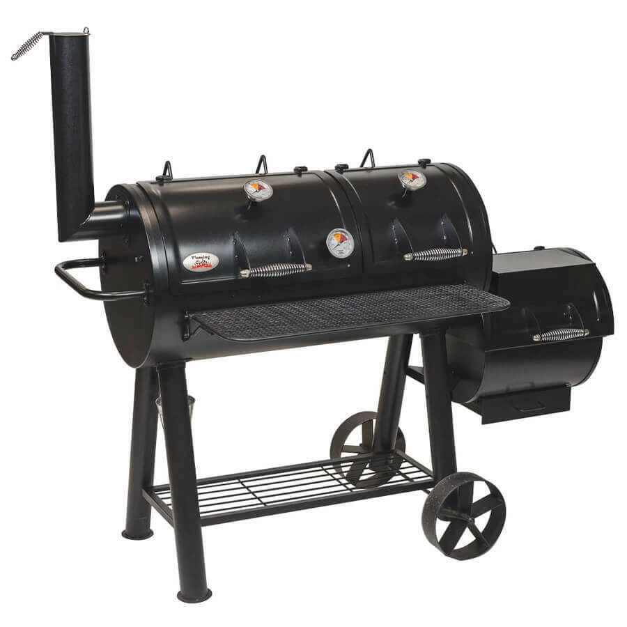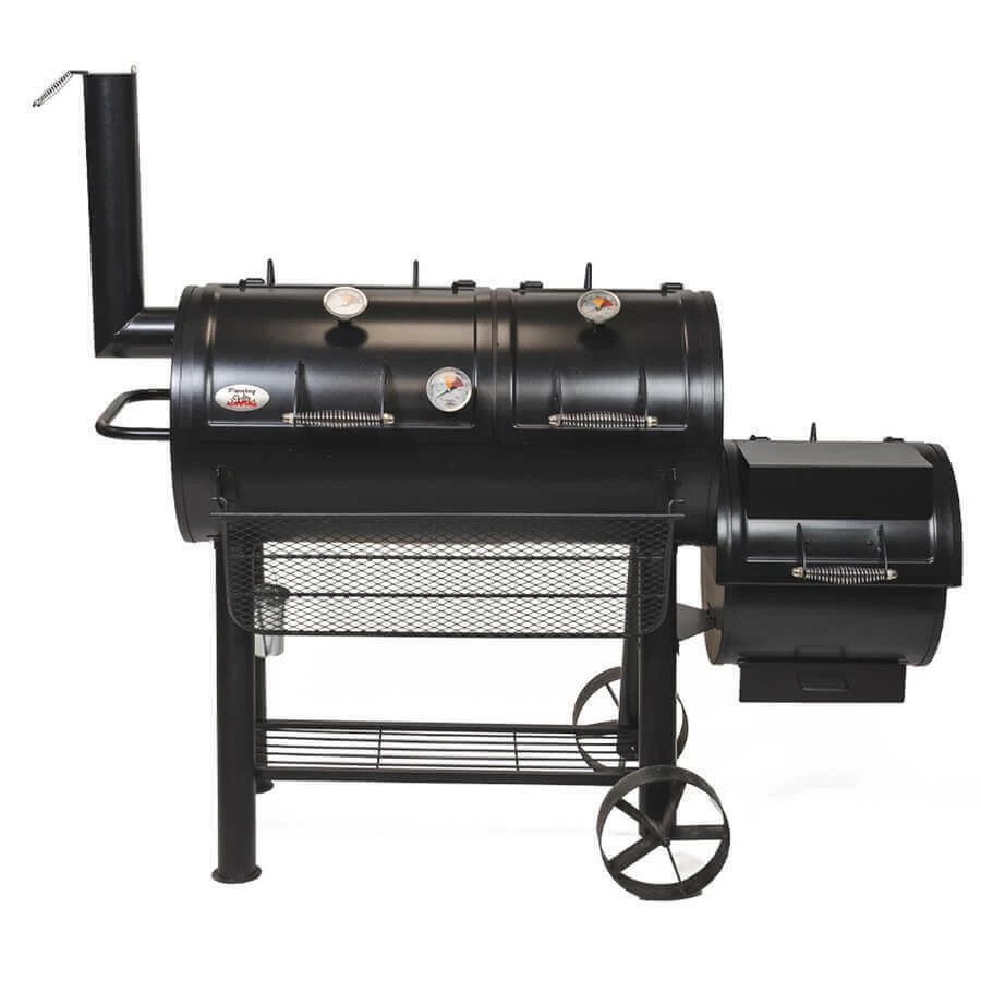 If you are looking for a solid and sturdy Texas-style offset smoker without breaking the budget, then the Offset Smoker BBQ by flaming coals is the logical choice. For added durability and efficiency, this smoker is constructed out of 3 & 4mm thick steel making it strong, the extra thickness in the body means less fuel is needed to maintain your desired cooking temperatures and together with the 20mm wide heat sealing tape around the cook chambers doors makes this one of the best value, heavy duty, high quality offset smokers available in Australia.Â