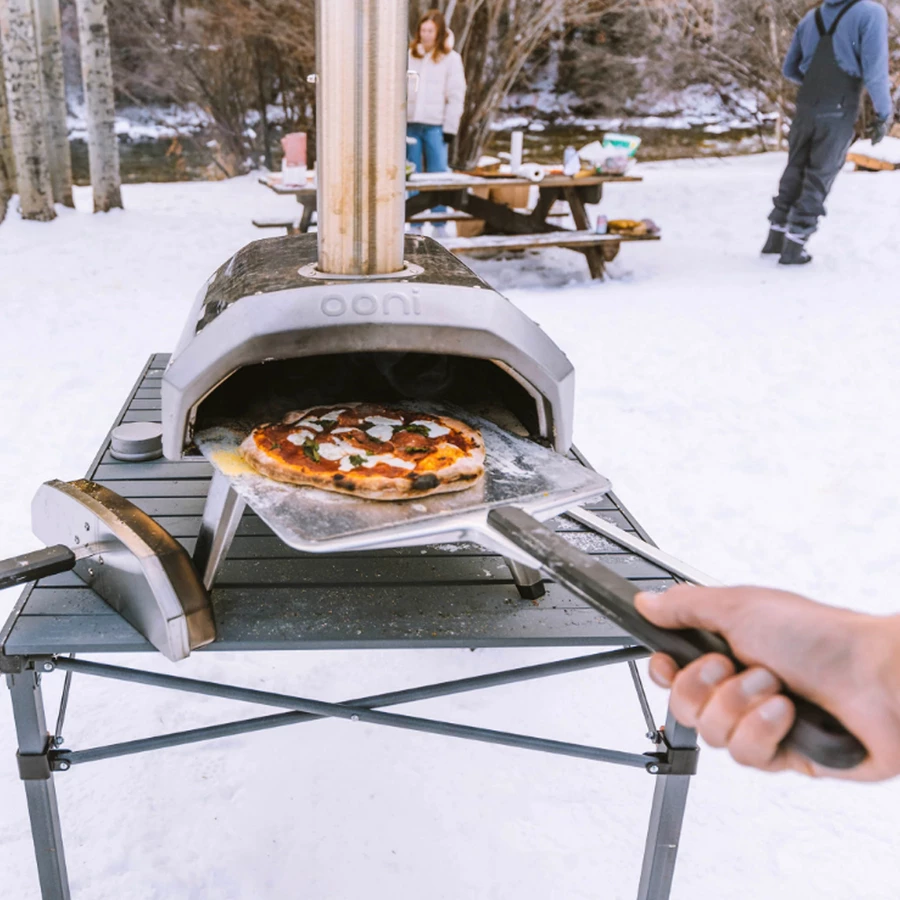 Easy access for loading and unloading pizzas on your Ooni pizza oven! Pizza slides right into your Ooni pizza oven thanks to the incredibly smooth and lightweight Ooni 14″ Pizza Peel.