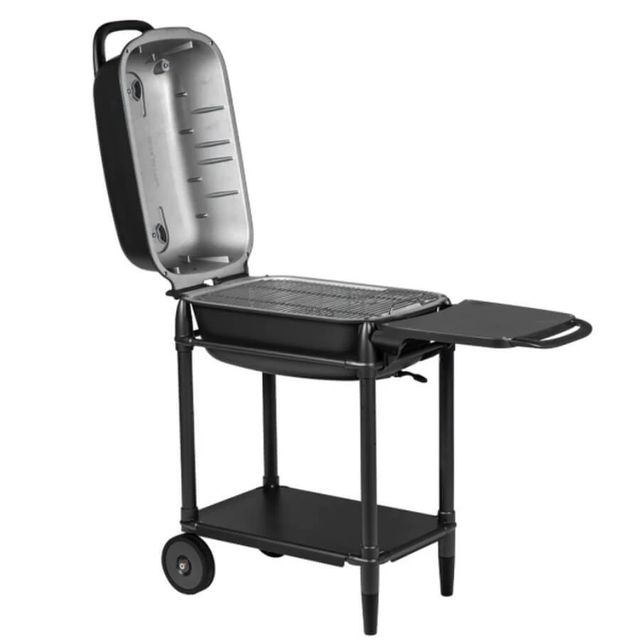 - Hinged cooking grid for easy coal management