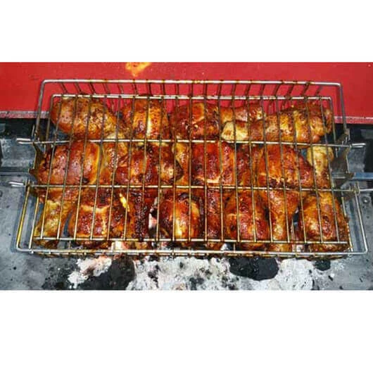 Rotisserie BBQ Basket Chrome is suitable for BBQs and rotisseries. Great for cooking anything that you can’t cook on a skewer such as chicken wings, fish, sausages, vegetables, butterflied chicken and so much more. The adjustable width of the Chrome basket makes this spit roasting accessory extremely versatile for a huge range of cooking options.Â