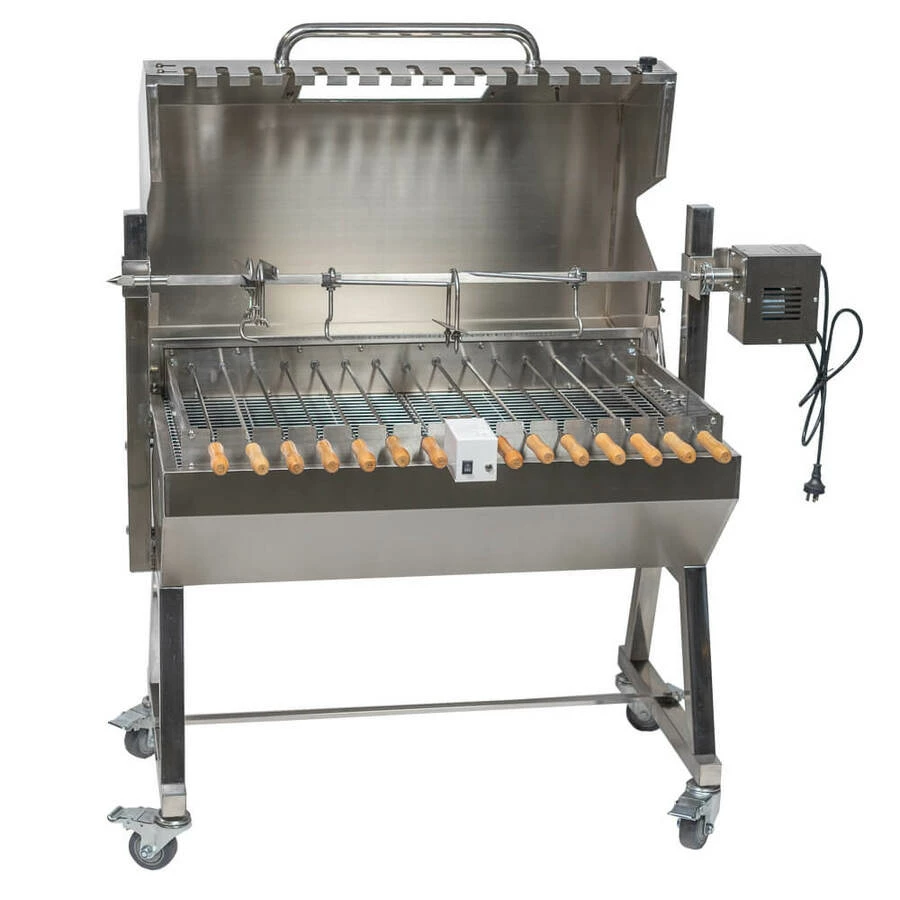 If you like entertaining your guests but don’t want a massive spit that is difficult to store when not in use, then the Stainless Steel Hooded Rotisserie & Cyprus Grill is a perfect midsized spit roaster. With its 1 piece main skewer that is easily capable of turning up to 30kg of balanced meat and its 14 individual smaller shish kebab skewers, this spit could easily cook enough meat for more than 30 guests in one go.Â