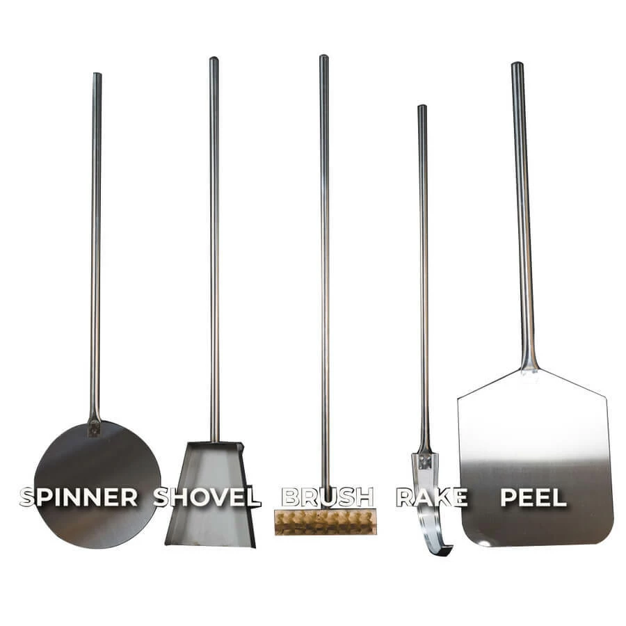With this 5-piece stainless steel complete pizza tool/accessory kit (1 shovel, 1 rake,1 peel, 1 brush & 1 spinner), you’ll be cooking pizzas to perfection and enjoying the process along the way. These essential pizza oven accessories will help you cook easily, and safely and serve up pizza swiftly. Add this pizza toolkit to your arsenal and start enjoying authentic pizzas right in your very own backyard! Any wood-fired oven requires these important tools!
