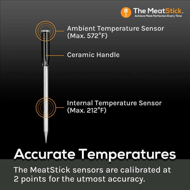 The MeatStick WiFi Bridge set was created for the most serious of pitmasters. You can measure both the flat and the tip of your brisket at the same time using the dual probes included (or two cuts of meat). You’ll always have access to your temps with the WiFI Bridge, whether you’re at home or in the store.
